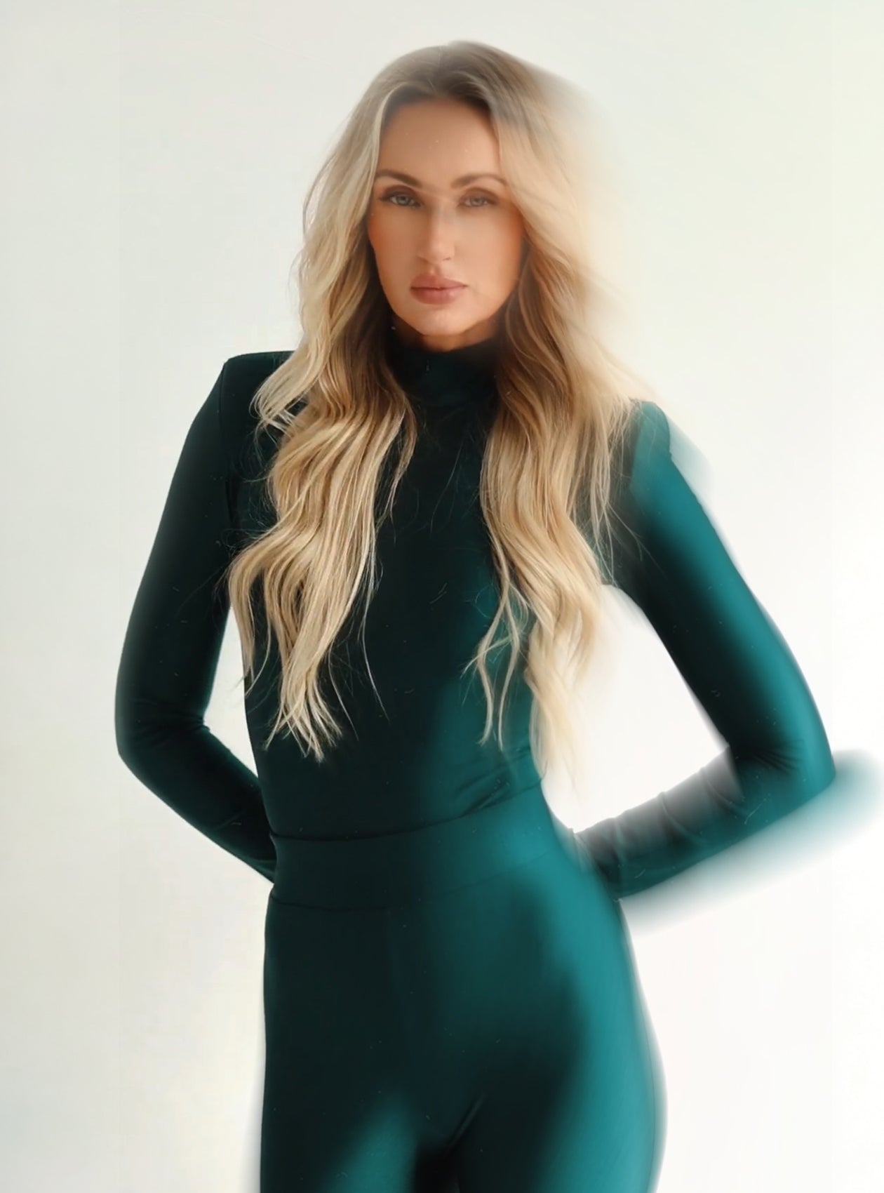 • A closed turtleneck that adds elegance and subtlety